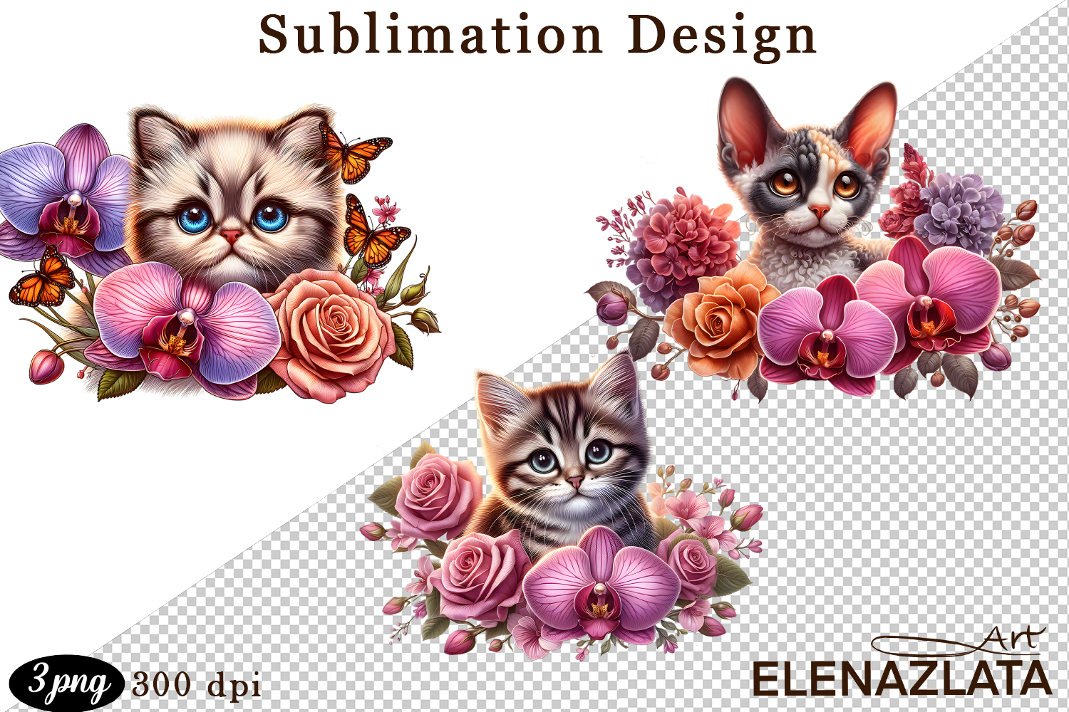 Funny Cats Sublimation |Flowers Cat Print example image 1