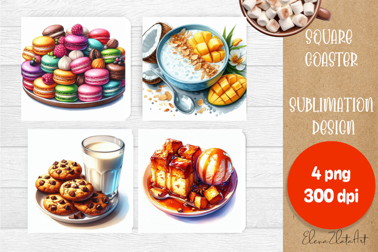 Colorful food Coaster Design, sweet dessert PNG example image 1