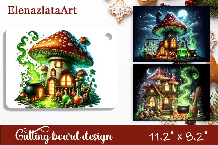 Kitchen Design Autumn Sublimation Cutting Board Designs Cutting Board Sublimation Cutting Board Png Cutting Board Sublimation Design Fairy Garden Png Magic House Printable Halloween Mushroom House Halloween Mushroom House Cutting Board