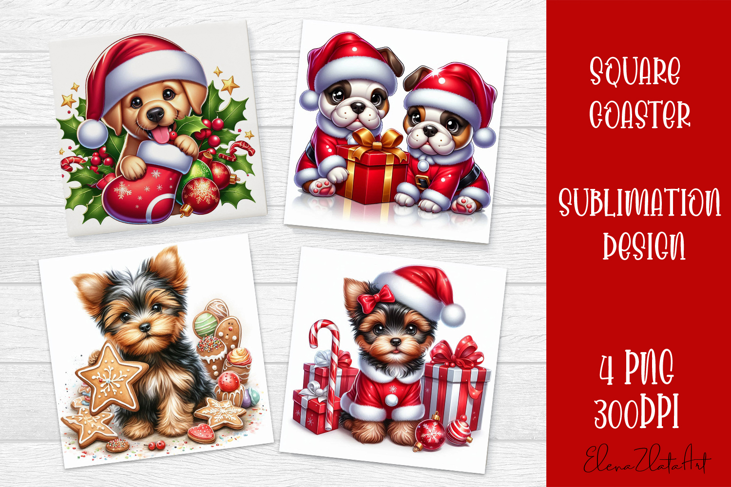 Funny Christmas dog Coaster Design | animal Square Coaster example image 1