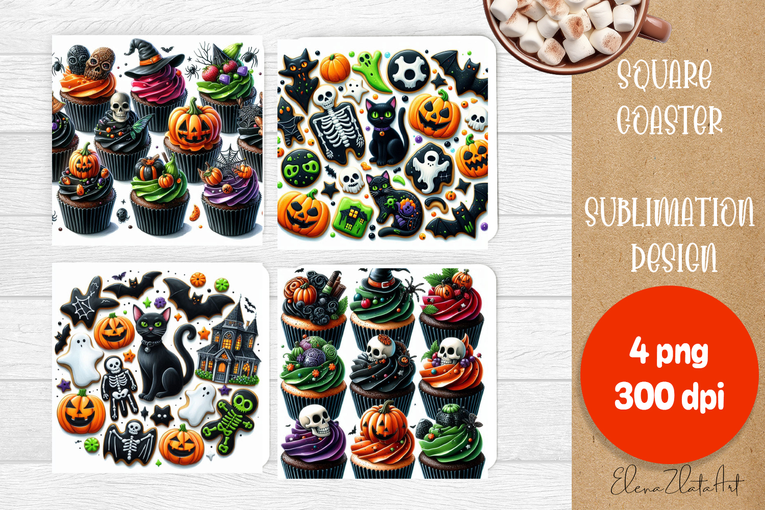 Funny Food Halloween Coaster Coaster Sublimation Coasters Square Square Coaster Sublimation Sweet Cupcake Png Tea Cup Square Coaster Sweet Dessert Png Food Coaster Design Halloween Food Coaster Design
