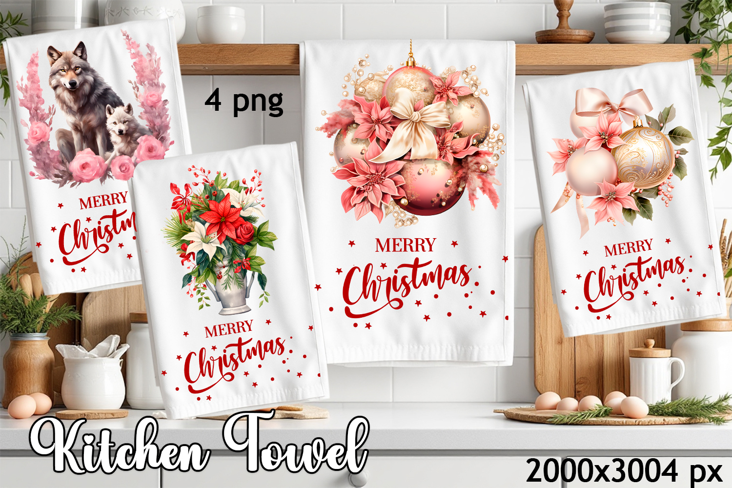 Christmas Kitchen Towel Sublimation Design flowers Christmas