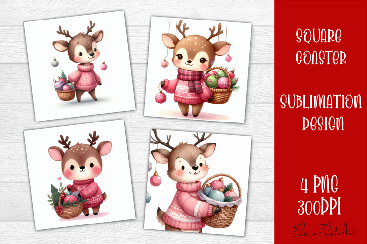 Christmas Animals Funny Christmas Art Decor Animals Sublimation Coaster Sublimation Coasters Square Square Coaster Sublimation Christmas Square Coaster Tea Cup Square Coaster Funny Christmas Deer Square Coasters