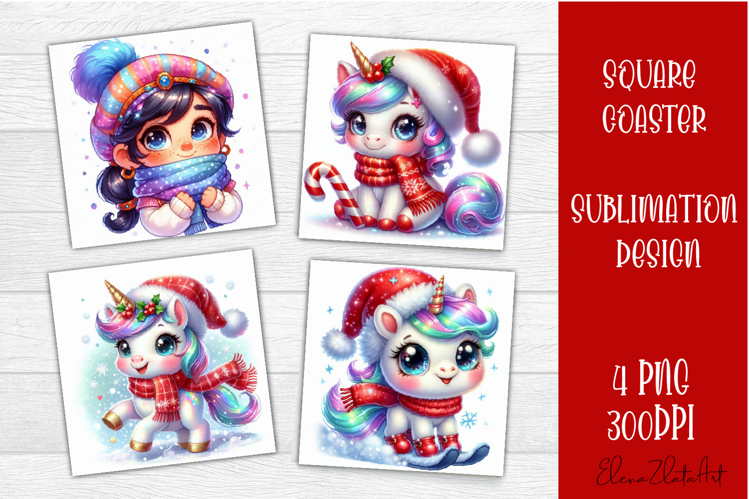 Cute Animals Unicorn Christmas Coaster Sublimation Coasters Square Square Coaster Sublimation Square Coaster Sublimation Designs Tea Cup Square Coaster Design Tea Cup Square Coaster Unicorn Square Coaster Unicorn Christmas Square Coaster