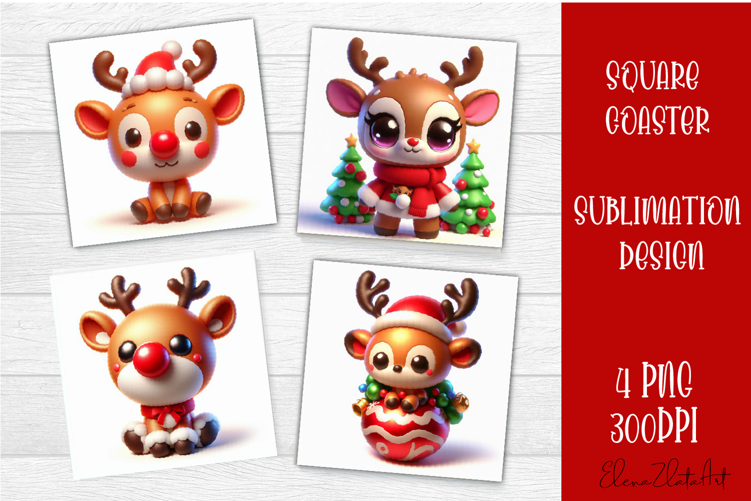 3D Christmas Coaster Sublimation |cute animal example image 1
