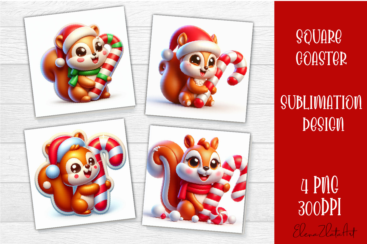 3D Christmas Coaster Sublimation |cute animal example image 1