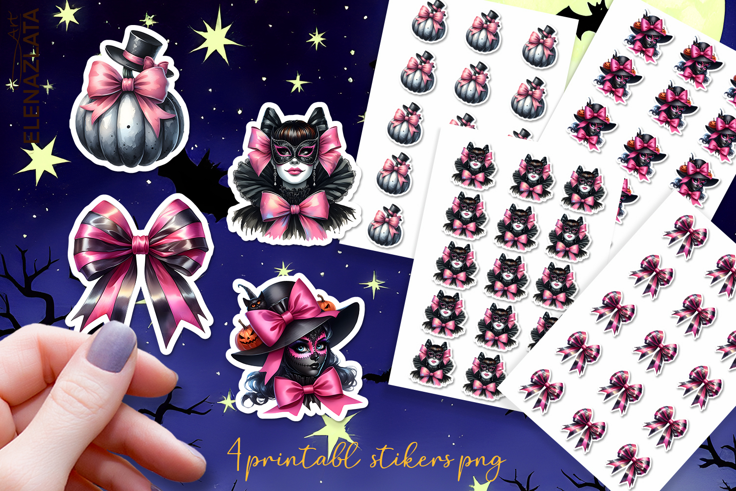 Halloween Stickers Halloween Print Cute Animal Stickers Halloween Sarcastic Rainbow Halloween Pink Bow Stickers Pink Gingham Bow Sticker Clipart Pink Halloween Printable Witch Hat Cute Round Sticker Funny Pink Halloween Printable Stickers Png Files
