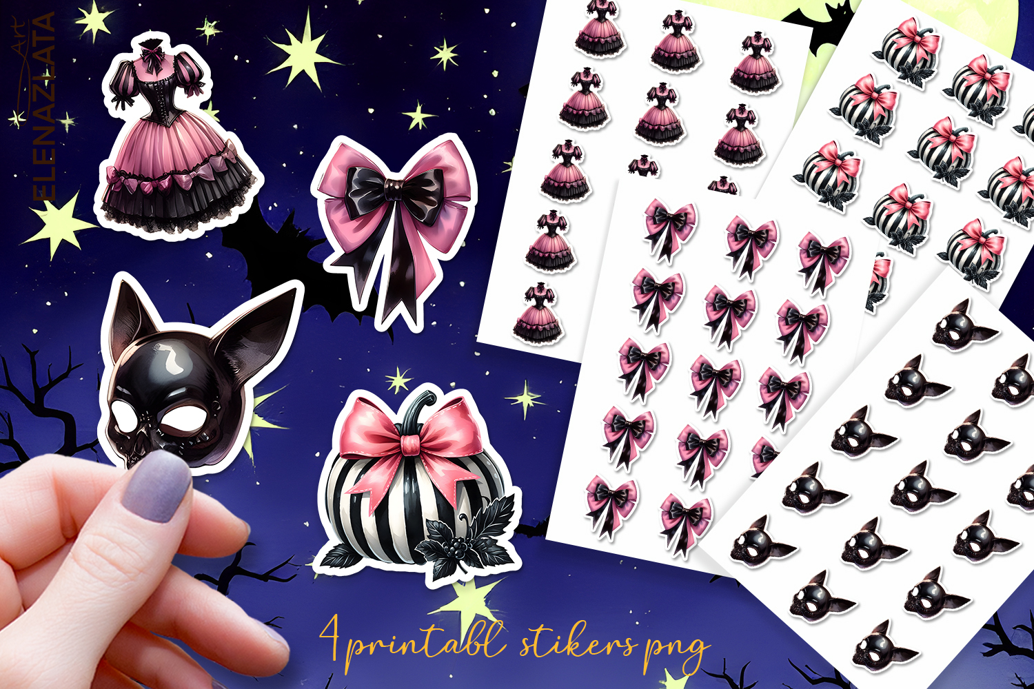 4 sticker sheets in PNG format, 8.5' x 11' letter size ( transparent background, 300 dpi);