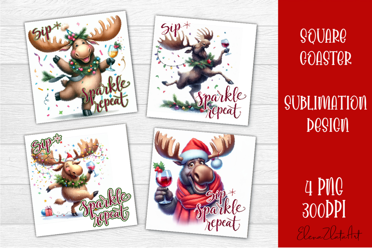 Christmas Animals Funny Christmas Coaster Sublimation Square Coaster Sublimation Christmas Square Coaster Tea Cup Square Coaster Funny Christmas Moose Wine Lover Christmas Coasters Funny Moose With Wine Png Cute Holiday Animal Png