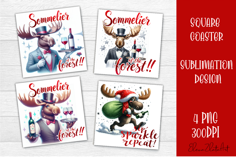 Christmas Animals Funny Christmas Coaster Sublimation Square Coaster Sublimation Christmas Square Coaster Tea Cup Square Coaster Funny Christmas Moose Wine Lover Christmas Coasters Funny Moose With Wine Png Cute Holiday Animal Png
