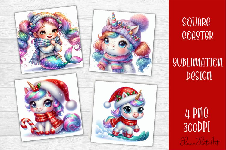 Cute Animals Unicorn Christmas Coaster Sublimation Coasters Square Square Coaster Sublimation Square Coaster Sublimation Designs Tea Cup Square Coaster Design Tea Cup Square Coaster Unicorn Square Coaster Unicorn Christmas Square Coaster