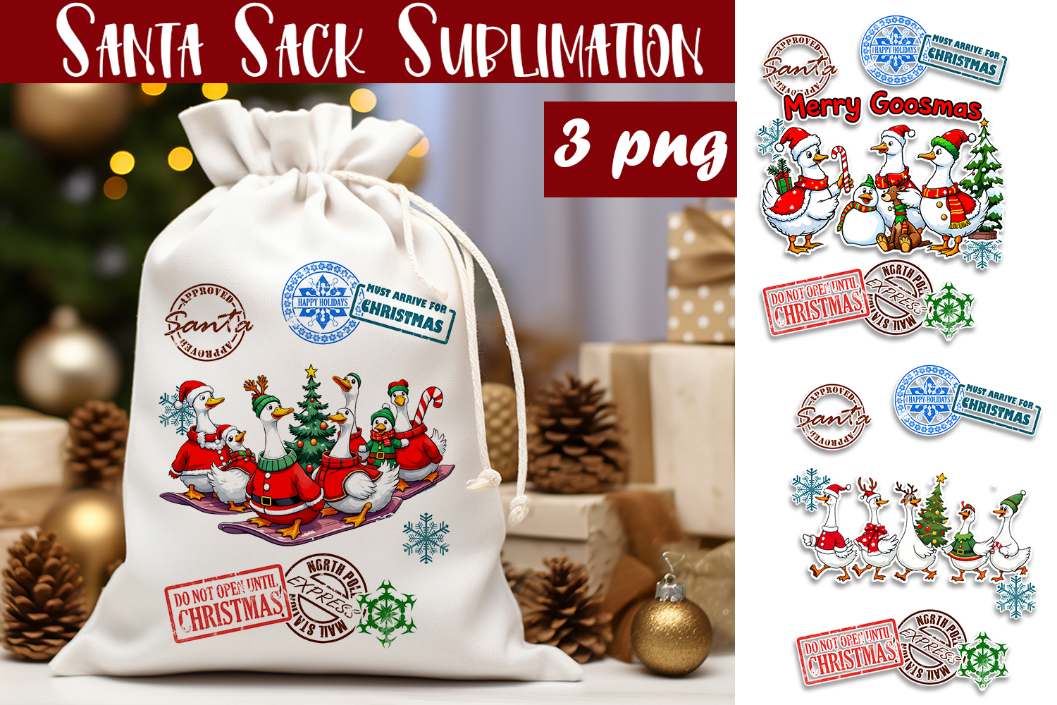 Santa Sack Sublimation | Christmas Goose PNG Santa Sack example image 1