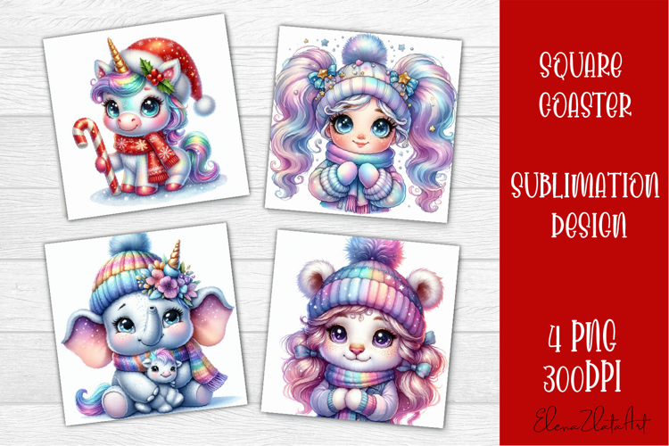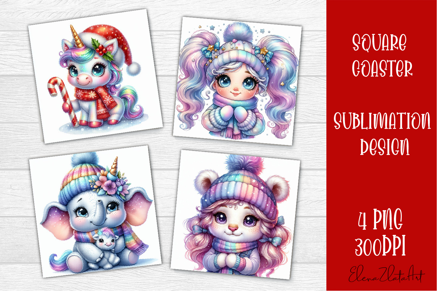 Cute Animals Unicorn Christmas Coaster Sublimation Coasters Square Square Coaster Sublimation Square Coaster Sublimation Designs Tea Cup Square Coaster Design Tea Cup Square Coaster Unicorn Square Coaster Unicorn Christmas Square Coaster