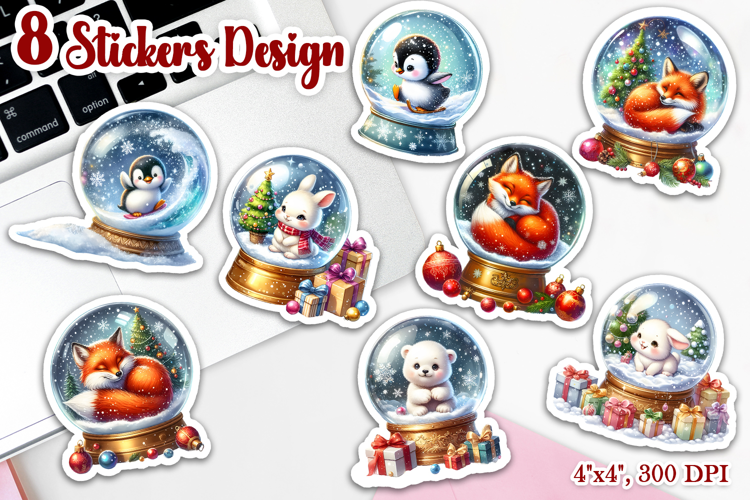 This charming collection features 8 unique PNG stickers, including a cute Christmas Santa Claus and other festive designs — all with charming white frames and a 3D effect.