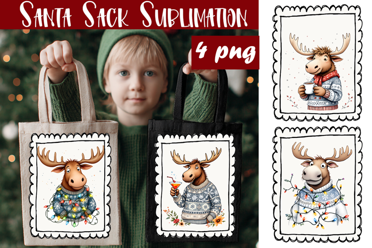 Watercolor Clipart Christmas Graphics Christmas Gift Bag Winter Sublimation Cat Sublimation Holiday Sublimation New Year Sublimation Traditional Xmas Present Box Sublimation Moose Tote Bag