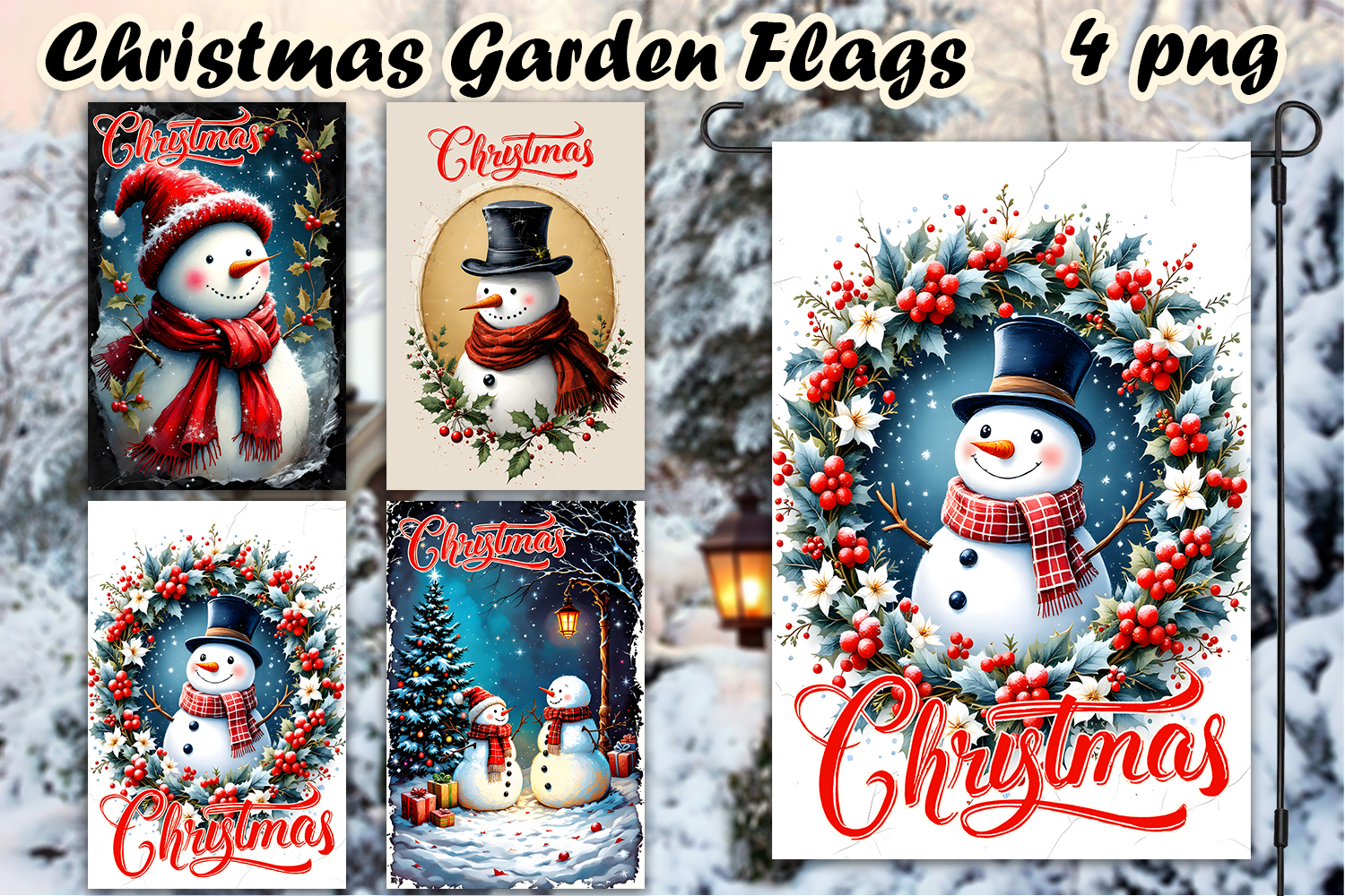 Christmas Garden Flag Welcome | Winter Snowman Garden Flag | 4 PNG Files (12" x 18", 300 DPI)