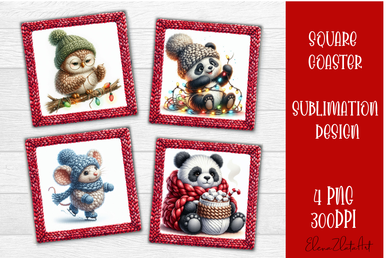 Cute Animals Animal Christmas Coaster Sublimation Coasters Square Crochet Christmas Square Coaster Sublimation Square Coaster Sublimation Designs Tea Cup Square Coaster Design Unicorn Square Coaster Funny Animal Square Coaster Sublimation