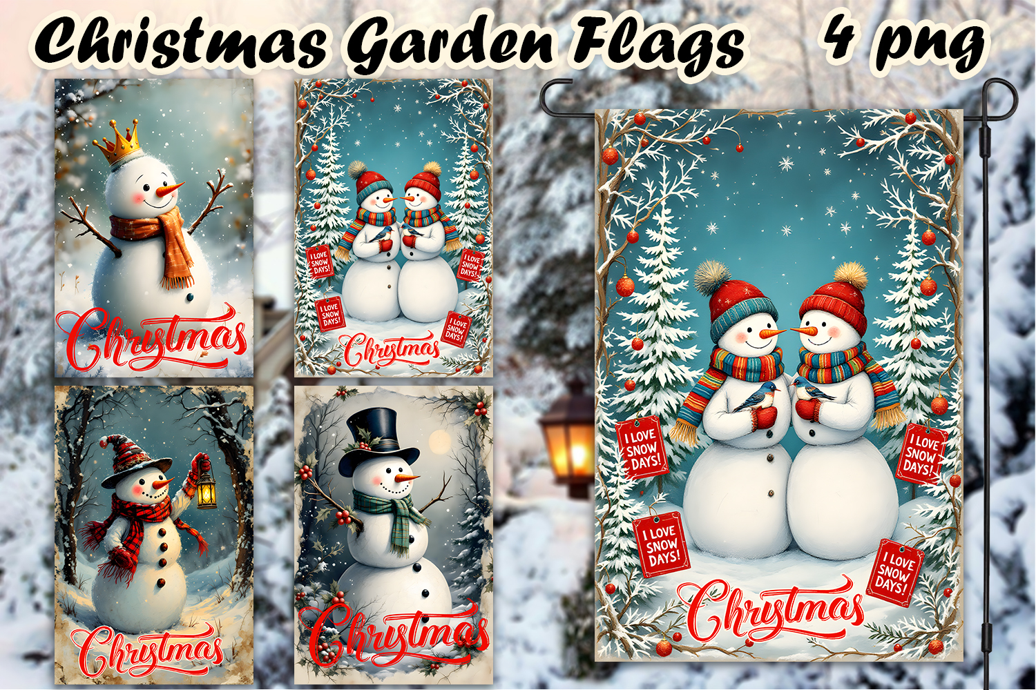 Christmas Garden Flag Welcome | Winter Snowman Garden Flag | 4 PNG Files (12" x 18", 300 DPI)