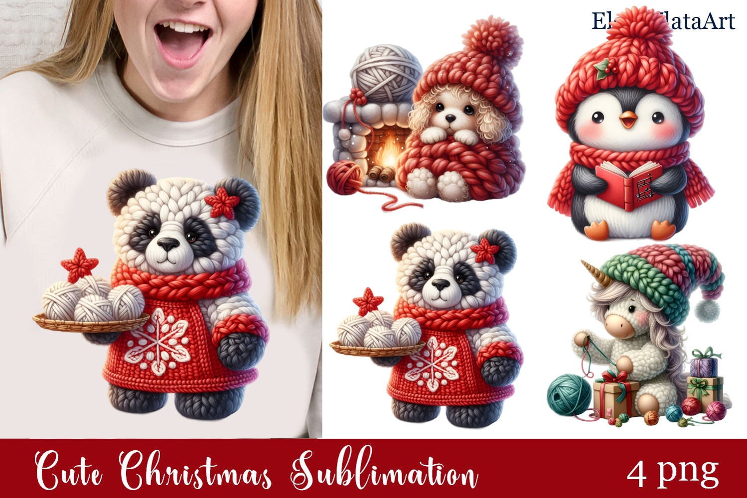 Similar Design Products to Crochet Yarn Christmas PNG, Cute animals Christmas PNG