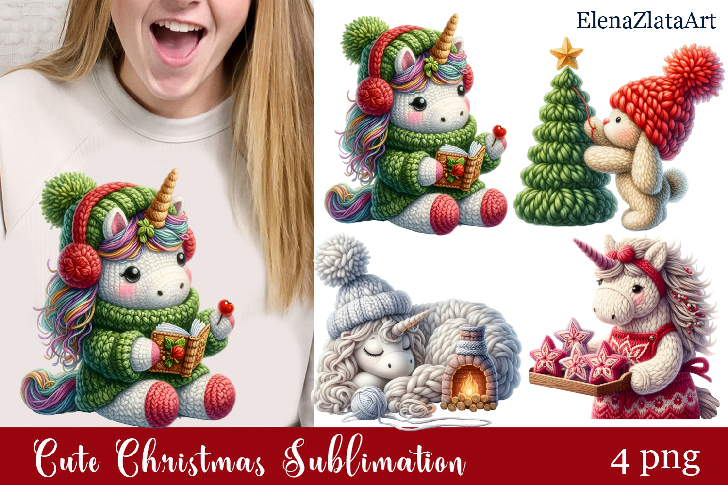 Similar Design Products to Crochet Yarn Christmas PNG, Cute animals Christmas PNG