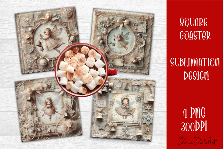 Vintage Christmas Scrapbooking square Coaster Design example image 1