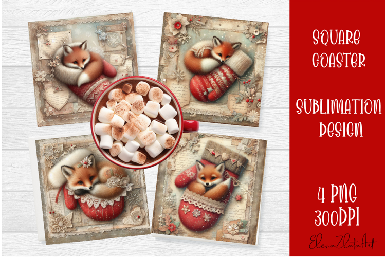 Vintage Christmas Scrapbooking square Coaster Design example image 1