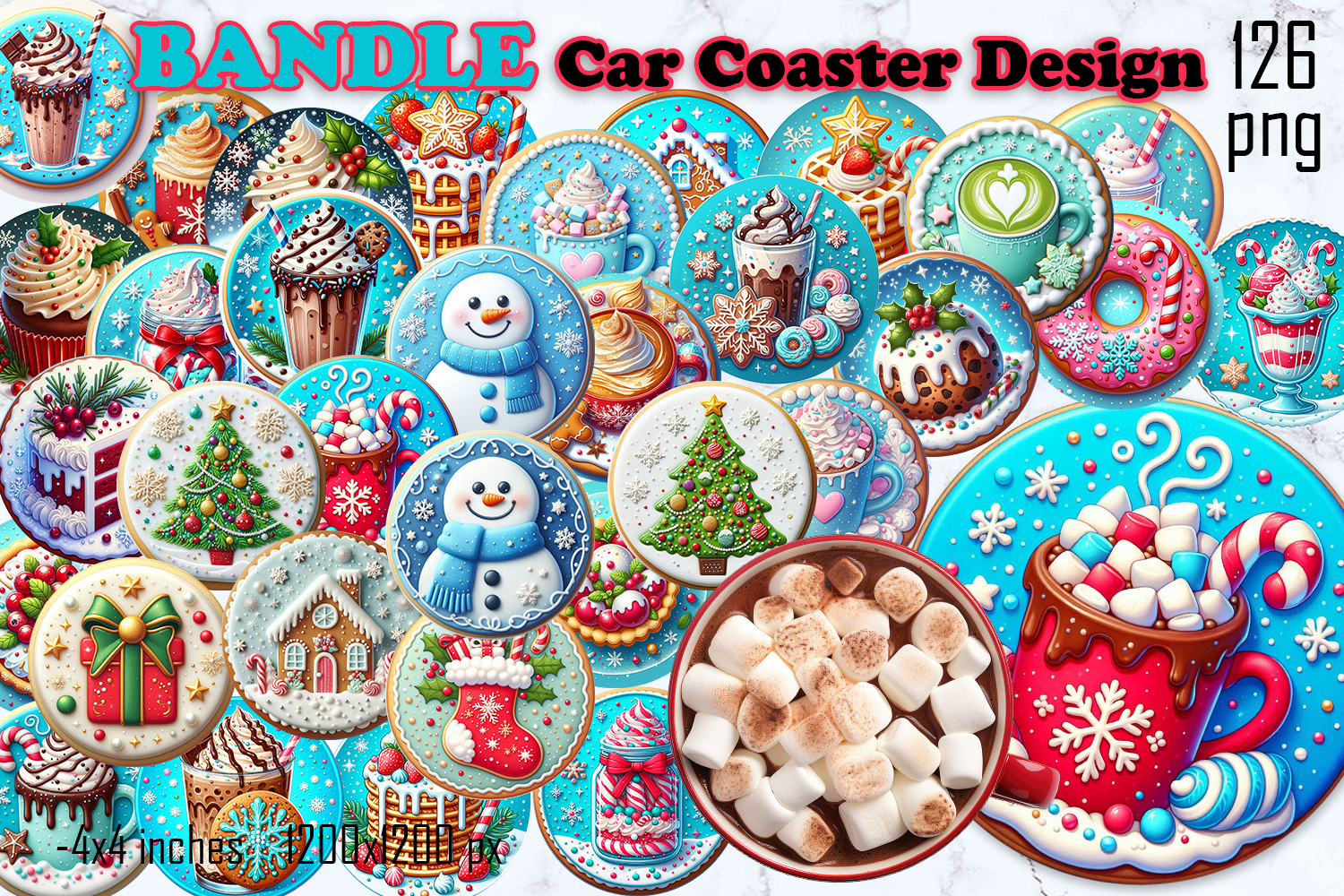 Round Christmas cookie decor Sublimation car Coaster example image 1