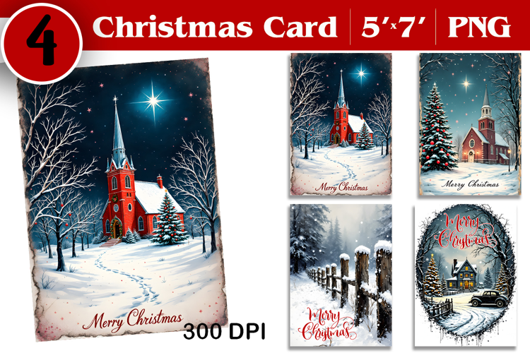 Merry Christmas Card. Printable cards. Winter design example image 1