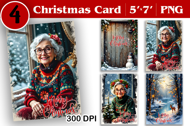 Merry Christmas Card. Printable cards. Grandmother design example image 1