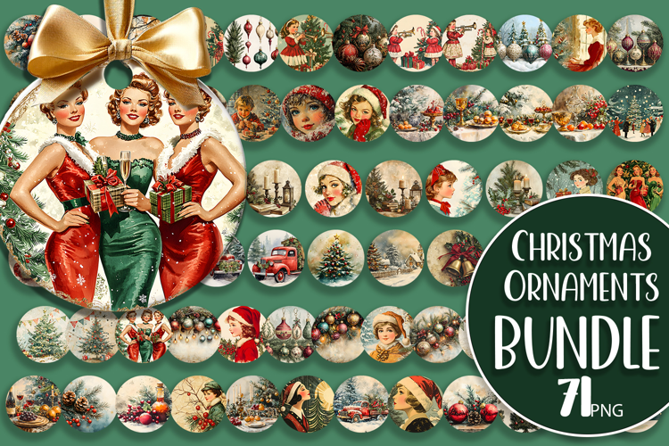 Immerse yourself in the atmosphere of a magical Retro Christmas with our Christmas Ornament Sublimation set! Included are 71 high-quality PNG files measuring 5x5" (1500x1500 px, 300 dpi), perfect for any of your holiday projects.
