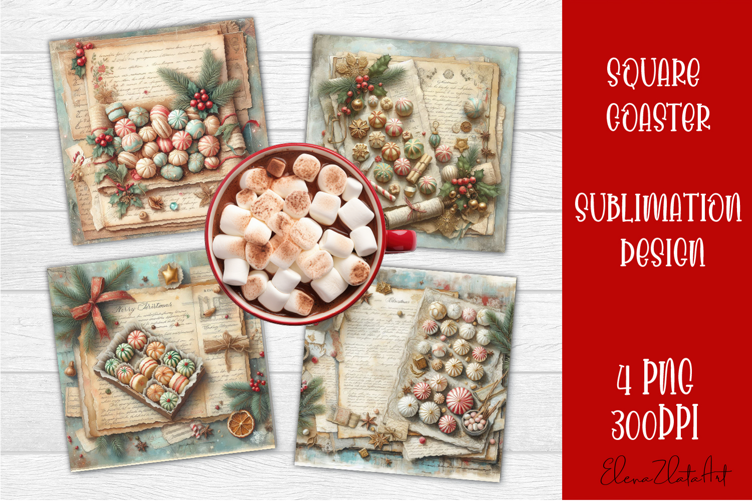 Vintage Christmas Sweet scrapbooking square Coaster Design example image 1