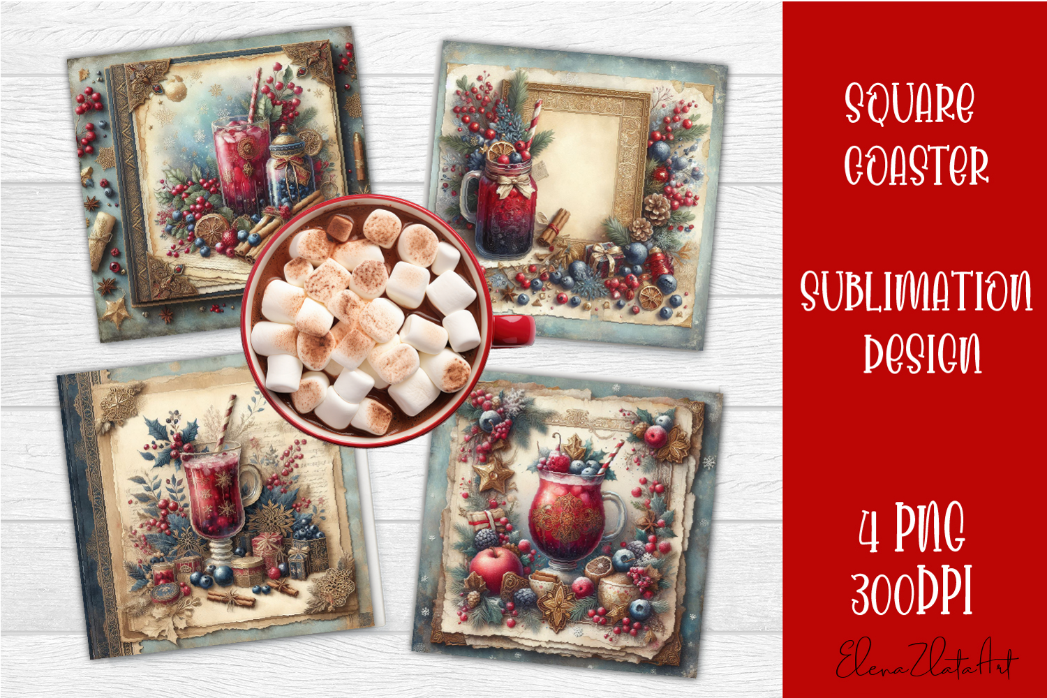 Vintage Christmas Sweet scrapbooking square Coaster Design example image 1