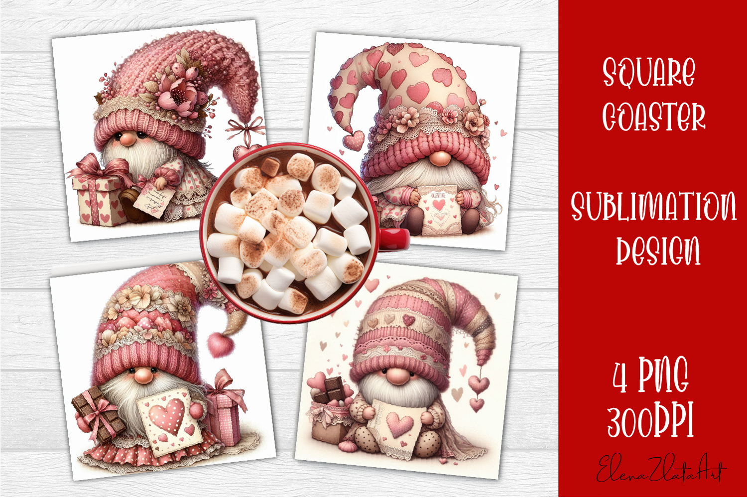 Pink Roses Christmas Coaster Coaster Designs Valentines Gnome Coaster Sublimation Coasters Square Square Coaster Sublimation Square Coaster Sublimation Designs Spring Square Coasters Cute Gnome Square Coaster Design