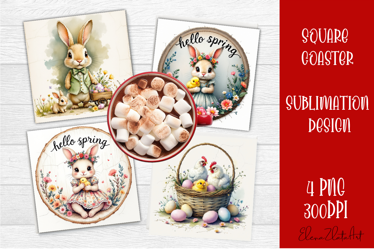 Happy Easter Bunny Easter Sublimation Coaster Designs Coaster Sublimation Coasters Square Square Coaster Sublimation Square Coaster Sublimation Designs Bunny Square Coaster Square Easter Coaster Sublimation Easter Coaster