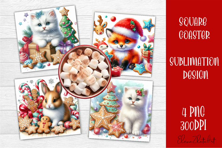 Christmas animal and cookies Sublimation Coaster Design example image 1