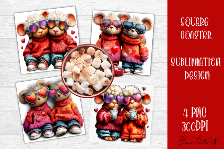 Valentines Day square coasters|love funny animal sublimation example image 1