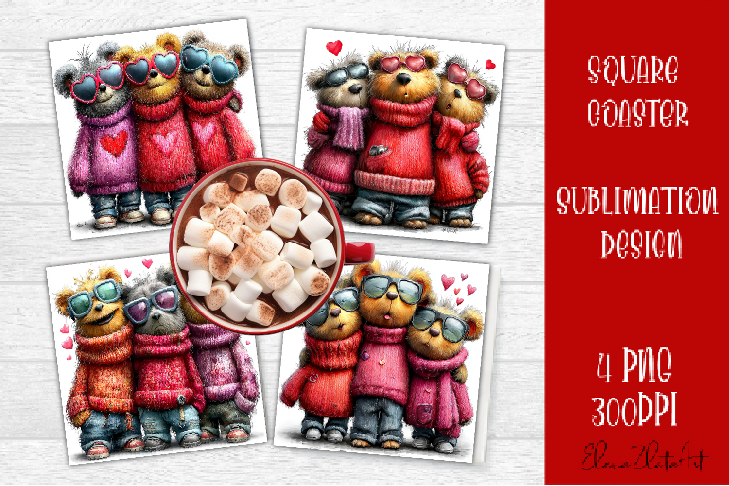 Bear Sublimation Funny Animal Sublimation Coasters Square Square Coaster Sublimation Square Coaster Sublimation Designs Tea Cup Square Coaster Design Tea Cup Square Coaster Valentines Day Coasters Love Funny Sublimation Crochet Funny Animal