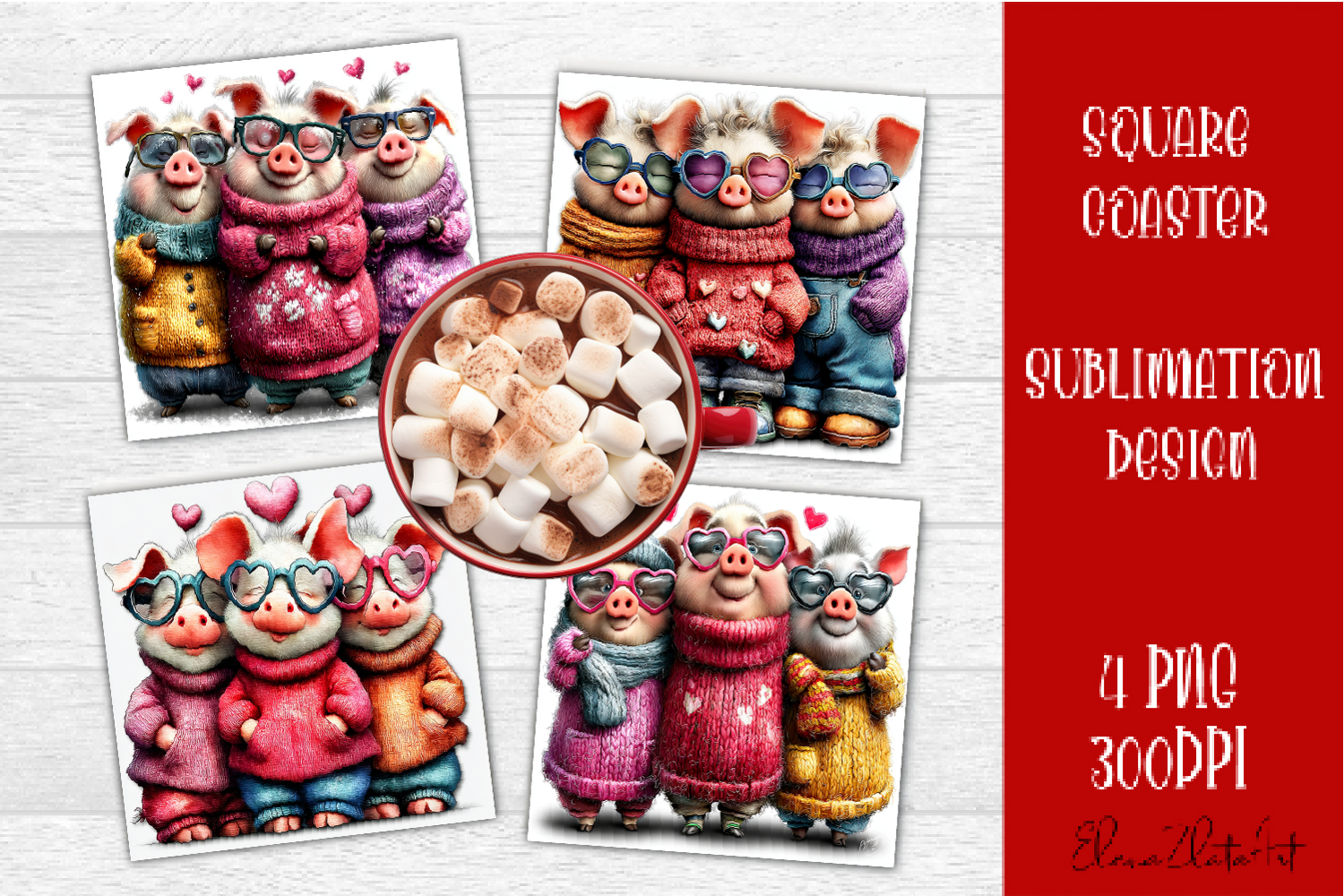 Pig Sublimation Funny Animal Sublimation Coasters Square Square Coaster Sublimation Square Coaster Sublimation Designs Tea Cup Square Coaster Design Tea Cup Square Coaster Valentines Day Coasters Love Funny Sublimation Crochet Funny Animal