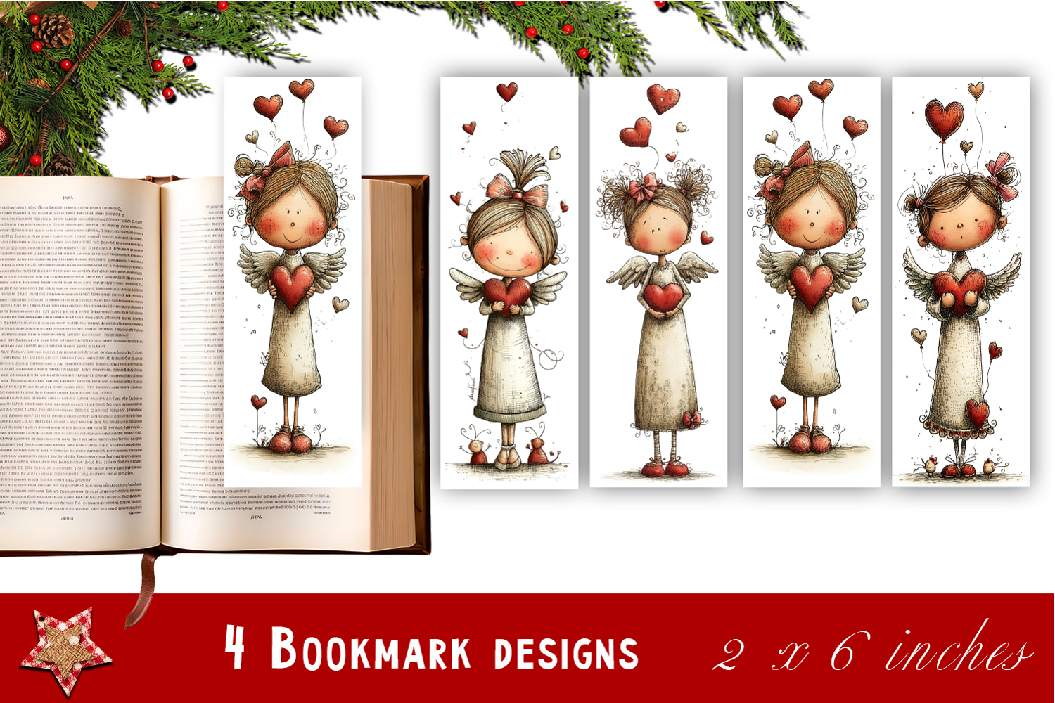 Watercolour Valentine Day, angel heart Bookmarks Sublimation example image 1