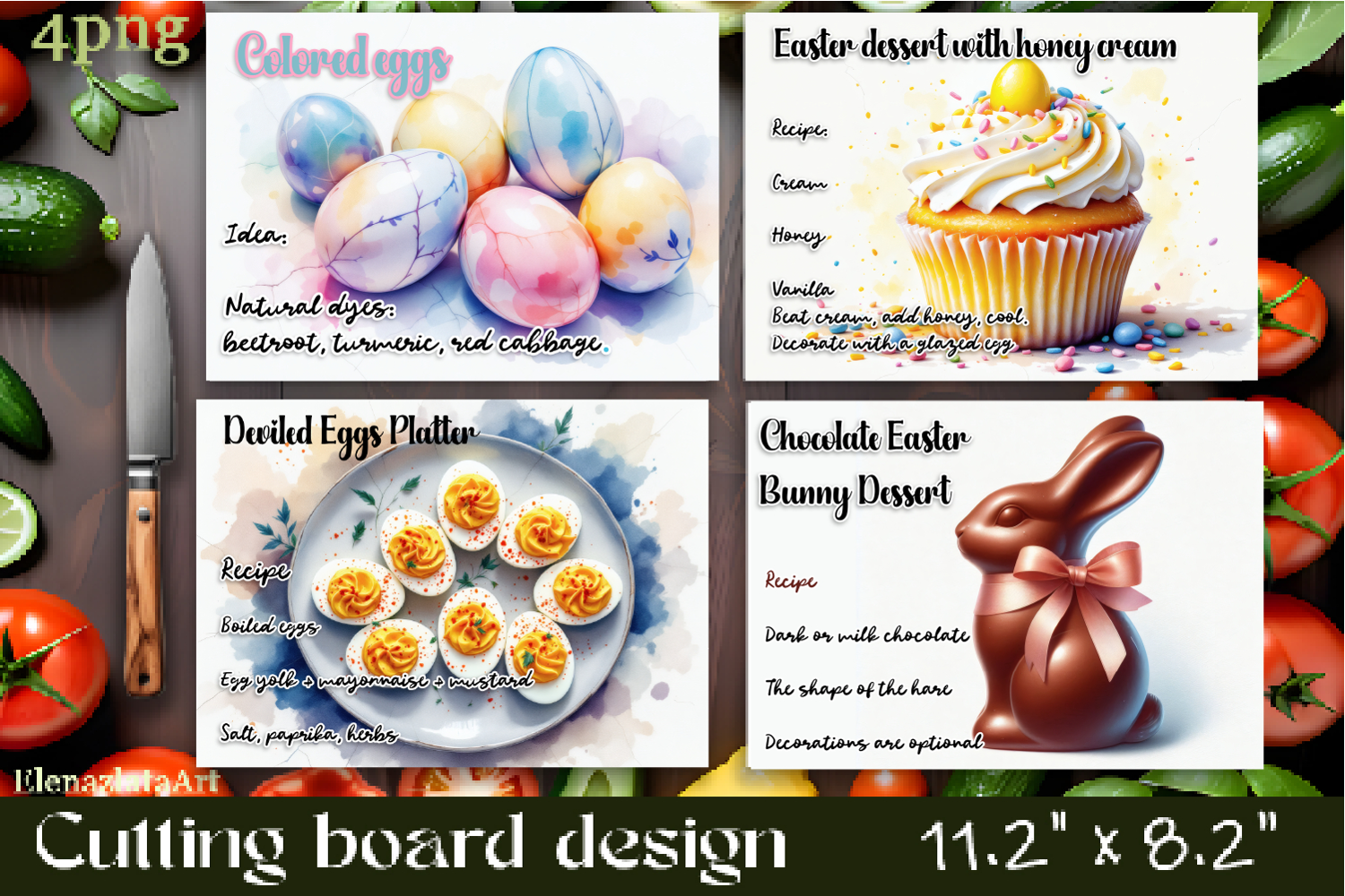 Watercolor easter food Design|Cutting Board Sublimation