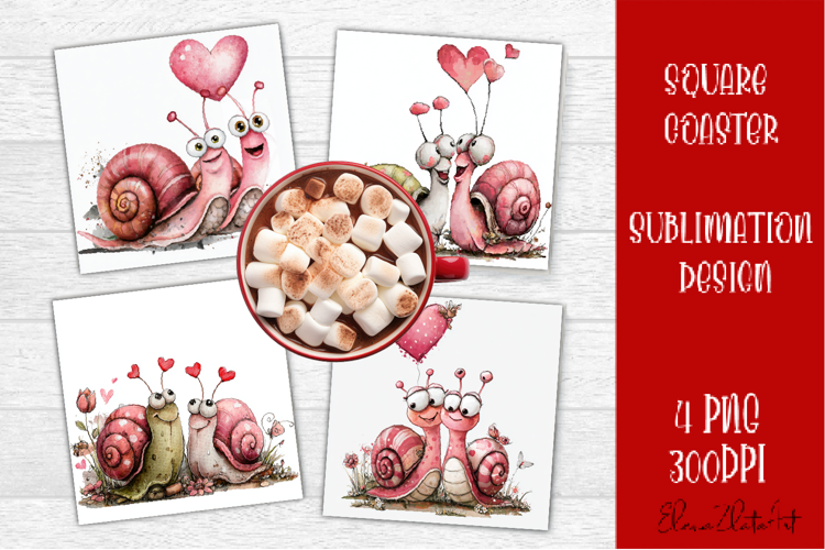 Coaster Sublimation Coasters Square Square Coaster Sublimation Square Coaster Sublimation Designs Tea Cup Square Coaster Design Valentines Day Coasters Cute Funny Angels Love Funny Sublimation Snail Square Coasters Snail Valentines Day