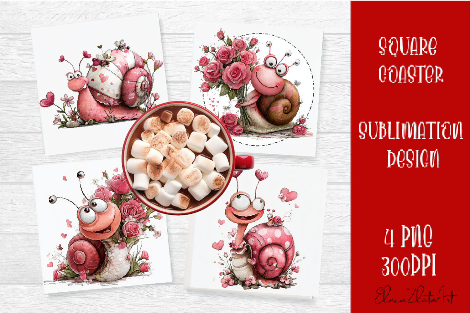 Coaster Sublimation Coasters Square Square Coaster Sublimation Square Coaster Sublimation Designs Tea Cup Square Coaster Design Valentines Day Coasters Cute Funny Angels Love Funny Sublimation Snail Square Coasters Snail Valentines Day