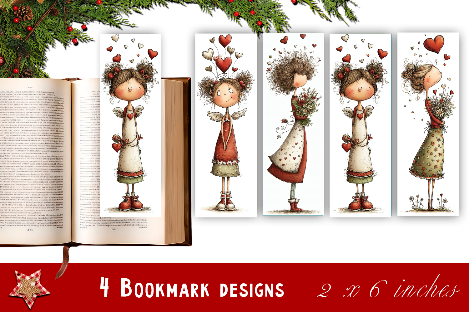 Watercolour Valentine Day, angel heart Bookmarks Sublimation