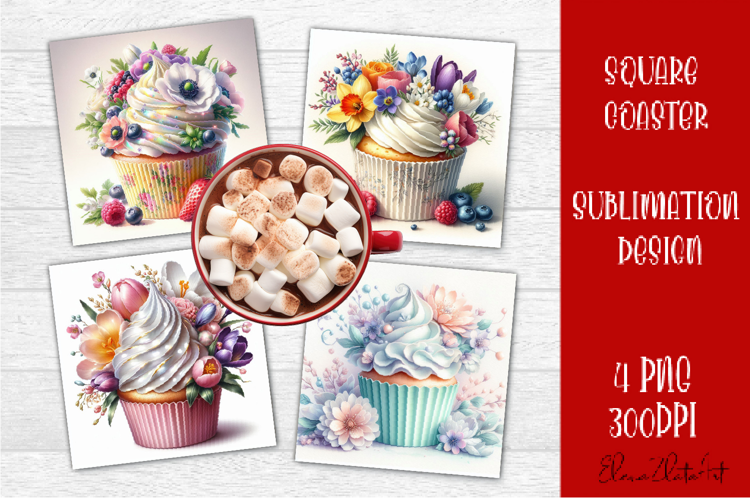 Coaster Sublimation Coasters Square Square Coaster Sublimation Sweet Cupcake Png Tea Cup Square Coaster Funny Food Coaster Design Food Coaster Design Cupcake Coaster Design Flowers Cupcake Berry Spring Cupcake