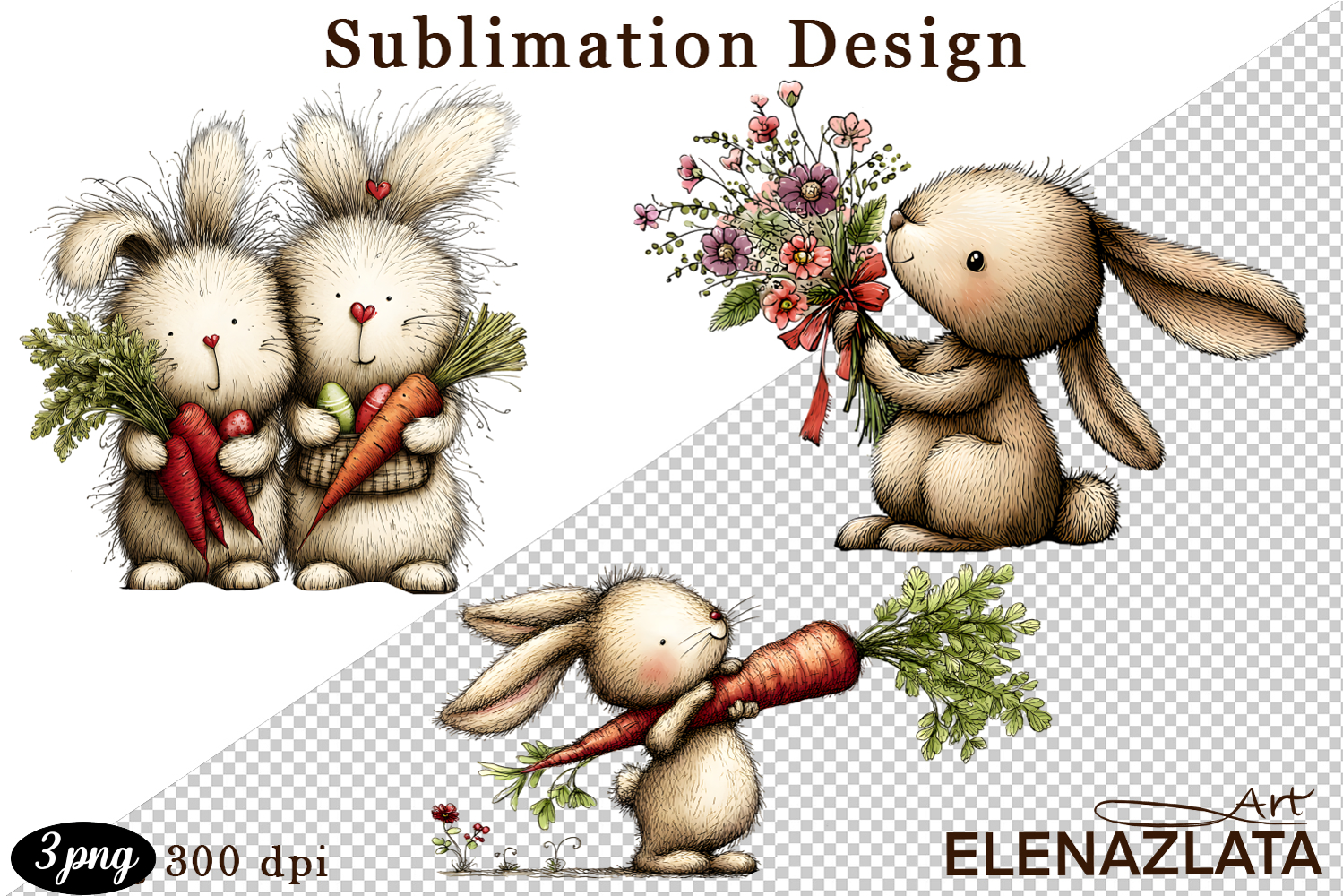 This collection includes 3 high-quality PNG illustrations featuring an adorable bunny and other charming animals in a soft, whimsical style.