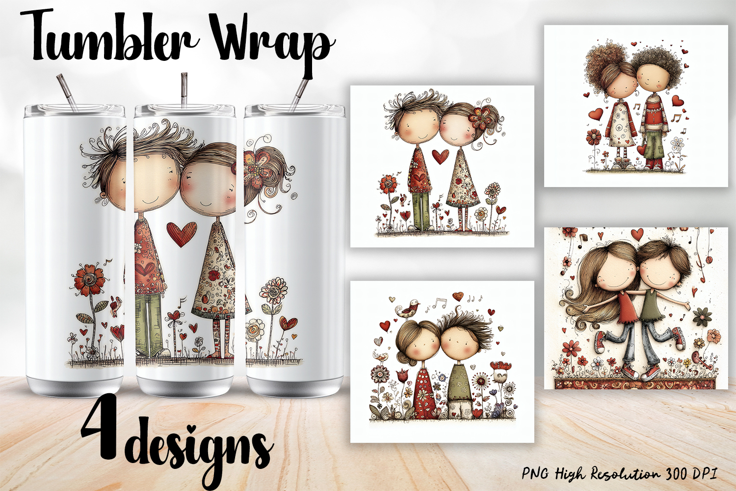 • 4 unique Valentine’s Day tumbler wrap designs