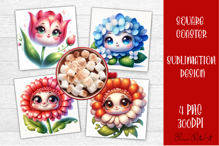 This bundle includes 4 cheerful floral designs created especially for square coaster sublimation. The playful characters bring warmth, personality, and a touch of whimsy to your home decor.