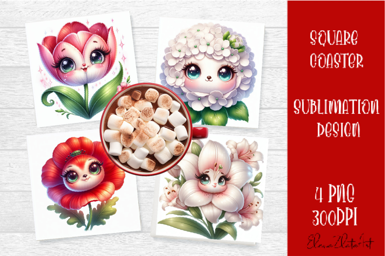 This bundle includes 4 cheerful floral designs created especially for square coaster sublimation. The playful characters bring warmth, personality, and a touch of whimsy to your home decor.