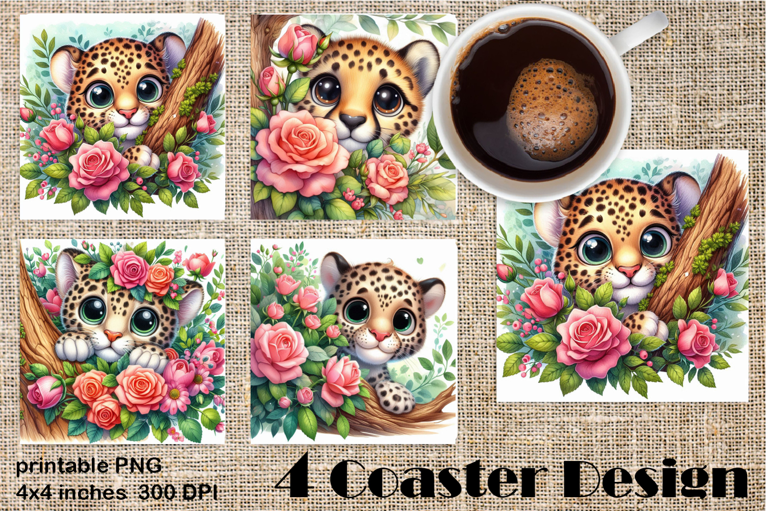 Cute Animals Animal Coaster Coaster Sublimation Coasters Square Square Coaster Sublimation Square Coaster Sublimation Designs Tea Cup Square Coaster Design Safary Animals Design Africa Coaster Sublimation Leopard In Roses