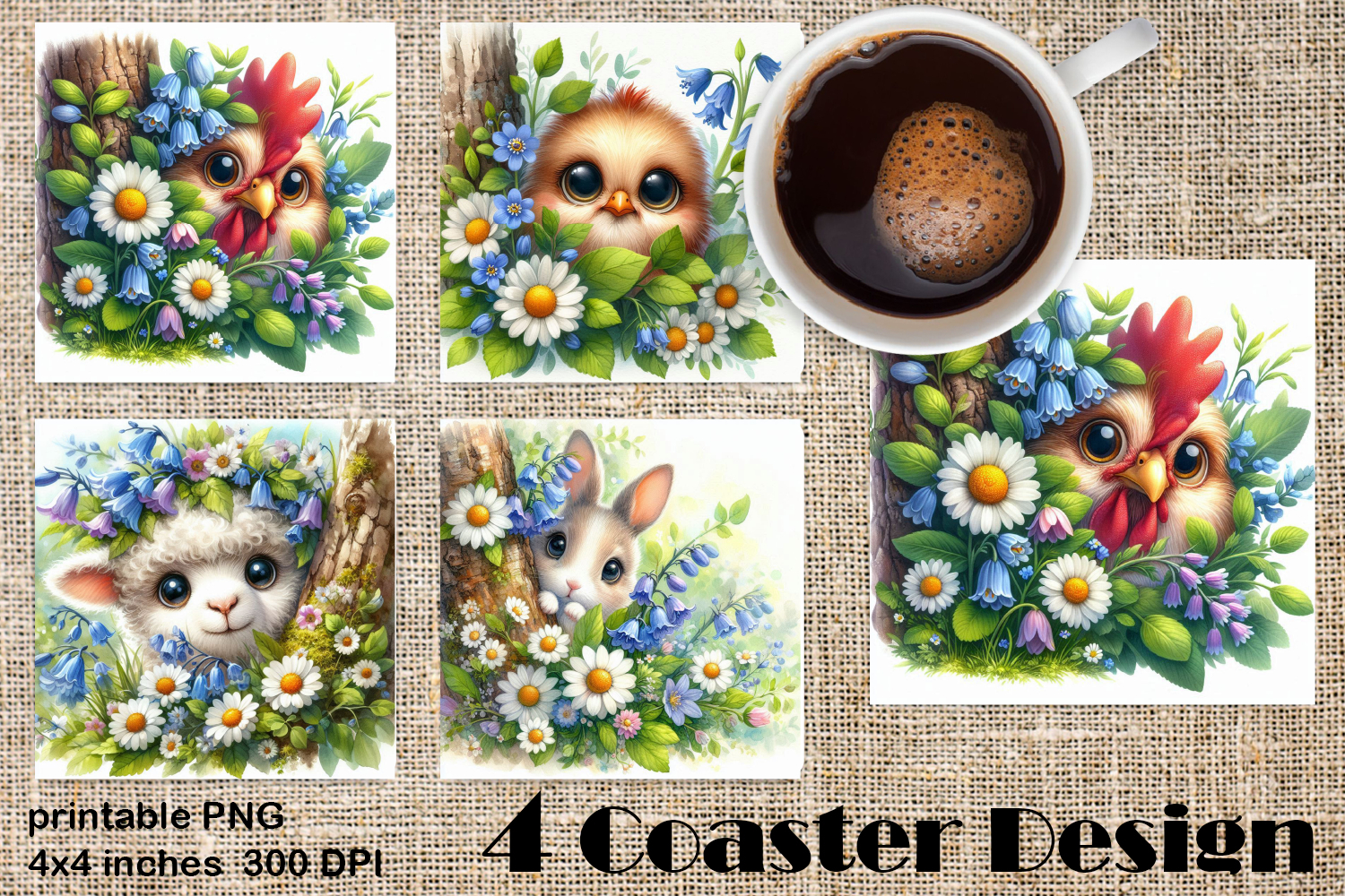 Cute Animals Animal Coaster Coaster Sublimation Flower Coaster Coasters Square Square Coaster Sublimation Square Coaster Sublimation Designs Tea Cup Square Coaster Design Farm Animal Coaster Funny Farm Animal Coaster